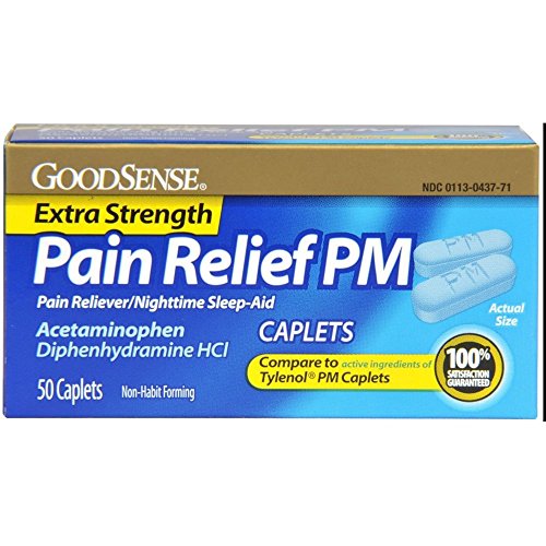 -. Binding : Health and Beauty -. Brand : Good Sense -. EAN : 0070030131845 -. Feature : Temporary relief of occasional headaches and minor aches and pains with accompanying sleeplessness / Good Sense -. IsAdultProduct : 0 -. Label : Good Sense -. Manufacturer : Good Sense -. NumberOfItems : 1 -. PackageQuantity : 2 -. ProductGroup : Health and Beauty -. ProductTypeName : HEALTH_PERSONAL_CARE -. Publisher : Good Sense -. Size : 50 -. Studio : Good Sense -. Title : Good Sense Extra Strength Pain Relief PM -- 50 Caplets -. UPC : 070030131845