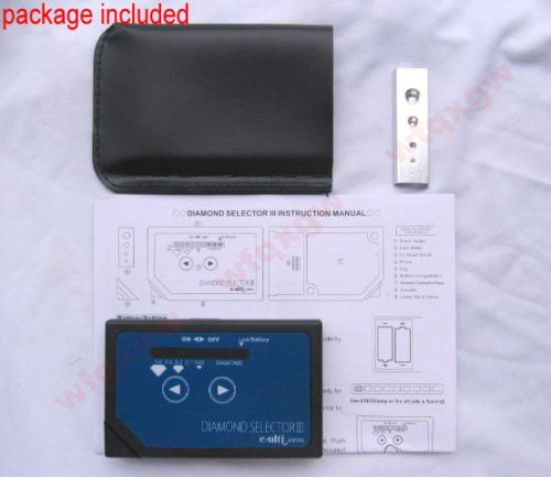 Description/Specification 1. Real Diamonds are indicated by RED LIGHT and SOUND. 2. Card size and compact 3. High accuracy,User-friendly, 4. Can work with stones of any settings, shapes, 5. Can work with stones of any sizes in any temperature. 6. Dimensions (LxWxH): 85mm X 54mm X 14mm 7. Power Supply:2 x AAA battery(NOT INCLUDED) 8. Weight:64g .