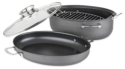 -. Title : Allrecipes Hard Anodized Nonstick 3-in-1 Oval Roaster with Au Gratin and Aroma Lids, 8.5 Quart, 4 Piece