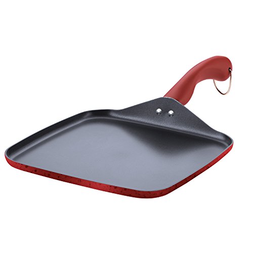 Affordable and stylish 11-inch square nonstick griddle in red from venerable Southern cook Paula Deen