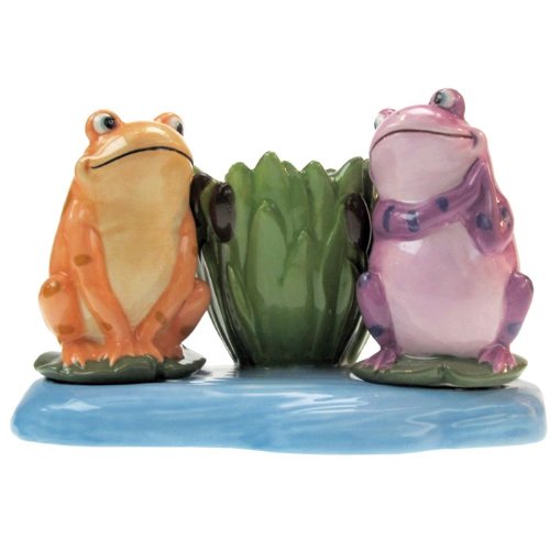 Westland Giftware Mwah Frogs Magnetic Ceramic Salt and Pepper Shaker with Toothpick Holder Set, 3.25-Inch