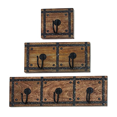 Woodland Imports Rustic Wood Metal Wall Hook Plaques, Set of 3