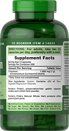 Puritan's Pride Cinnamon 500 mg-400 Capsules