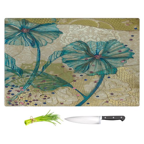 DiaNoche Designs CB-PaperMosaicClearBlueFlowers2 Paper Mosaic Studio-Clear Blue Flowers Cutting Boards from, Large 15" x 11"