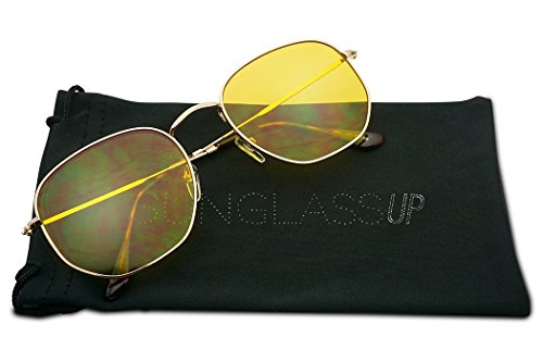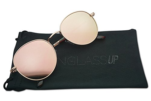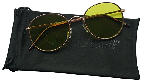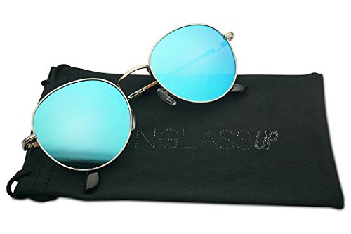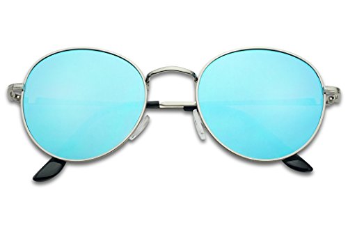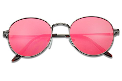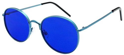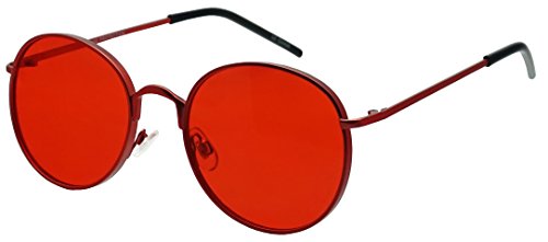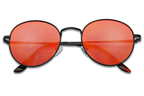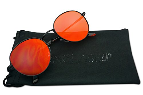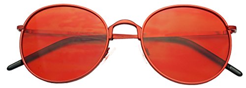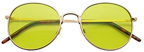| SunglassUP - Colorful Classic Vintage Round Flat Lens Lennon Style Sunglasses |