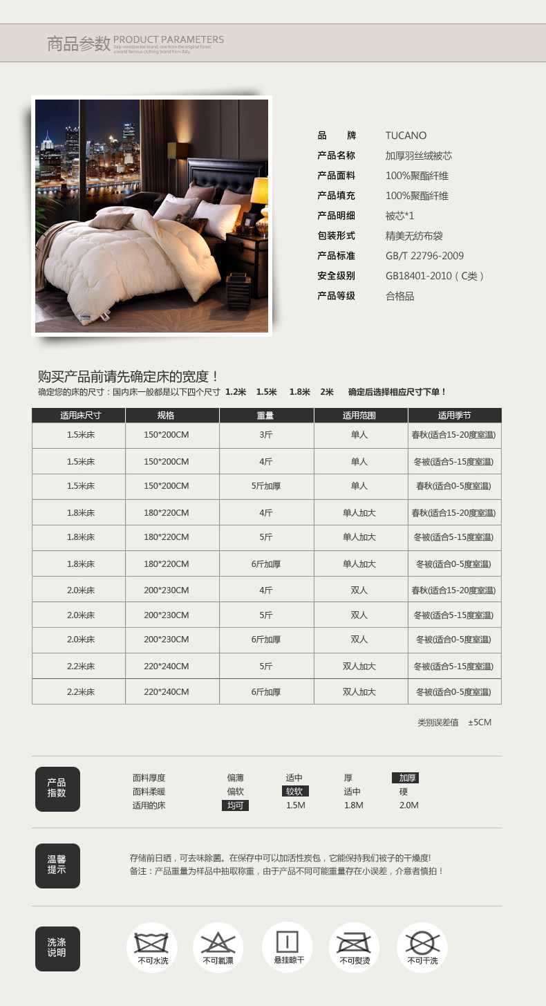 Filling fiber type: Polyester fiber (hollow)