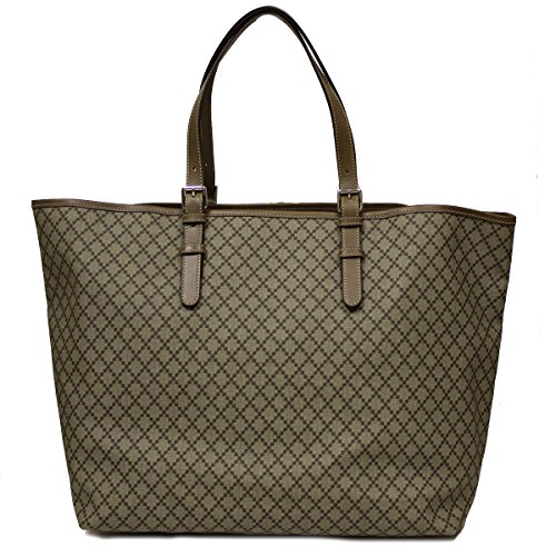 Gucci Diamante Supreme Canvas and Brown Leather Large Unisex Tote Bag 295250 is authentic and brand new. Includes all authenticity cards, control cards, and GUCCI dust-bag. This all leather Gucci tote is unisex with the dimensions 22 x 12 x 7 inches (large).Feature