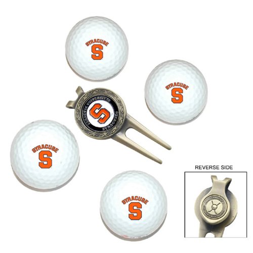 -. Binding : Sports -. Brand : Team Golf -. Color : Syracuse Orange -. EAN : 0637556261069 -. Feature : Four regulation golf balls / ImP.R.Inted durable logo on the balls / Divot Tool with belt/money clip / Includes removable double-sided enamel color fill magnetic marker / Extra small marker on the back -. Label : Team Golf -. Manufacturer : Team Golf -. Model : 26106 -. MPN : 26106 -. PackageQuantity : 1 -. PartNumber : 26106 -. ProductGroup : Sports -. ProductTypeName : SPORTING_GOODS -. Publisher : Team Golf -. ReleaseDate : 2010-05-12 -. Studio : Team Golf -. Title : NCAA Syracuse 4-Pack Team Golf Ball Gift Set -. UPC : 637556261069