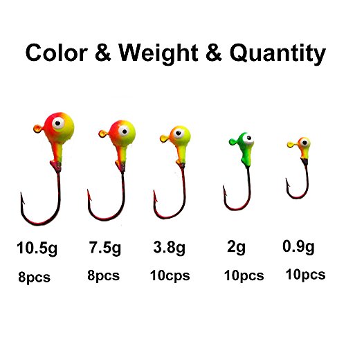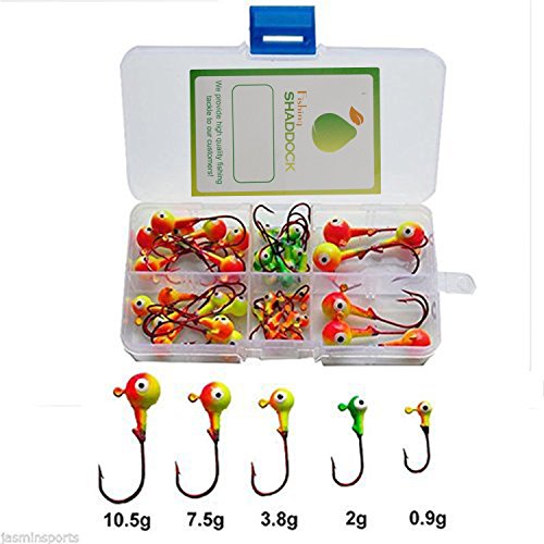 Studio : Shaddock Fishing Publisher : Shaddock Fishing Binding : Misc. Product Description Brand: Shaddock Fishing Trusted for Reliabilty, Durability, and Strength Quality and Field Tested to Ensure You Can Compete with The Best A: Fishing Jigs Hooks 46 Pcs Double Mix Color: 10.5gX8PCS 7.5gX8PCS 3.8gX10PCS 2gX10PCS 0.9gX10PCS B: Fishing Jigs Hooks 50 Pcs One Mix Color: 7.2gX10PCS 3.8gX20PCS 1.8gX10PCS 0.9gX10PCS C: Worm Hooks 7316 180 Pcs Size........Quantity..........Wire diamete..........Color 1 #..........50pcs..............1.25mm...................Black 1/0..........50pcs..............1.3mm.....................Tea 2/0..........20pcs..............1.4mm.....................Red 3/0..........20pcs..............1.5mm.....................Black 4/0..........20pcs..............1.6mm.....................Tea 5/0..........20pcs..............1.8mm.....................Red D:Offset Circle Hooks 7384 2X Size........Quantity..........Wire diamete..........Color 1 #..........50pcs..............1.25mm...................Black 1/0..........50pcs..............1.3mm.....................Black 2/0..........20pcs..............1.4mm.....................Black 3/0..........20pcs..............1.5mm.....................Black 4/0..........20pcs..............1.6mm.....................Black 5/0..........20pcs..............1.8mm.....................Black E:8299 Brab Hooks 1. Quantity: 190pcs/box 6#: 100pcs 2#: 50pcs 2/0: 20pcs 4/0: 10pcs 6/0: 10pcs Please Enjoy Shopping with Our High Quality Fishing Hooks Set