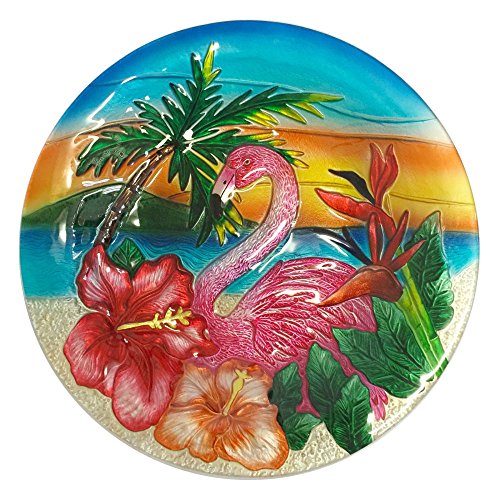Continental Art CAC02989 18" Hand Painted Flamingo Glass Bowl