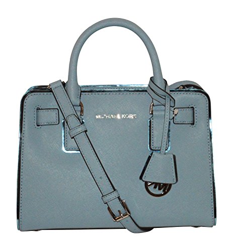 -. Feature : 10-3/10" W x 7-1/2" H x 4-1/4" D / •Double handles with 4" drop; adjustable shoulder strap with 19" drop / •Exterior features gold-tone hardware, signature lettering and hanging logo medallion / Saffiano leather