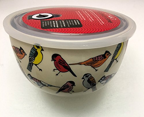 Ciroa Microwaveme Fine Porcelain LARGE Microwave Bowl with Silicone Seal | Lid Diameter: 7", Height: 4.25" | Tapered Bottom | Popular Chickadee Pattern with Oatmeal Background