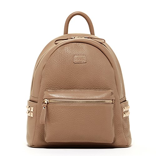 -. Brand : SUSU -. Department : womens -. Feature : *Width: 11.5″ *Height: 12″ *Depth: 6″ *Strap Drop: 16"-21″ / Genuine Leather / Cotton Lining / Top Zip Closure / This chic backpack crafted from genuine pebbled leather, features a top zip closure and is accented by gold-toned studs on its sides. Its roomy interior includes 2 cell phone slots, a zip pocket and a middle compartment designed to fit and protect an iPad. This must-have carryall also includes two adjustable backpacks straps. The Diana is available in black, brown and cement. -. ProductGroup : Shoes -. ProductTypeName : HANDBAG -. Title : SUSU The Diana Leather Backpack With Studs
