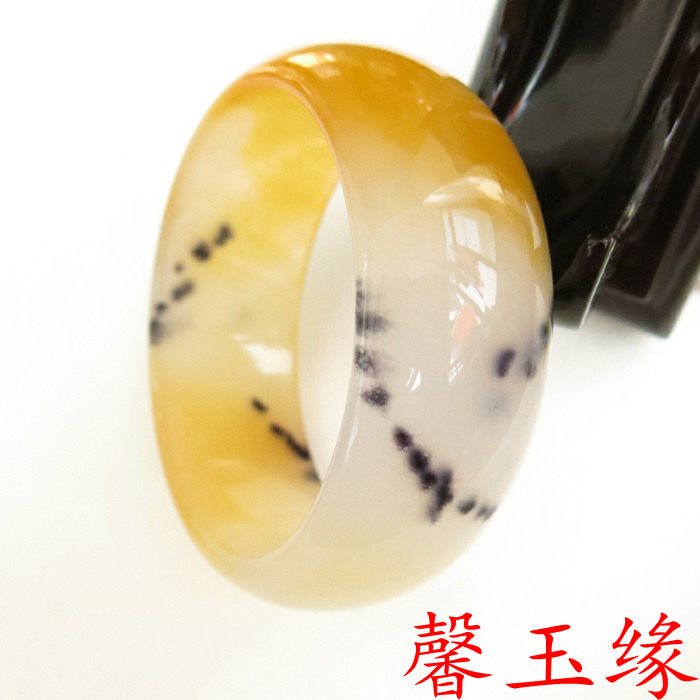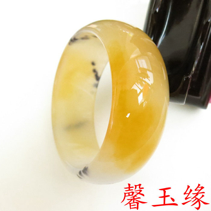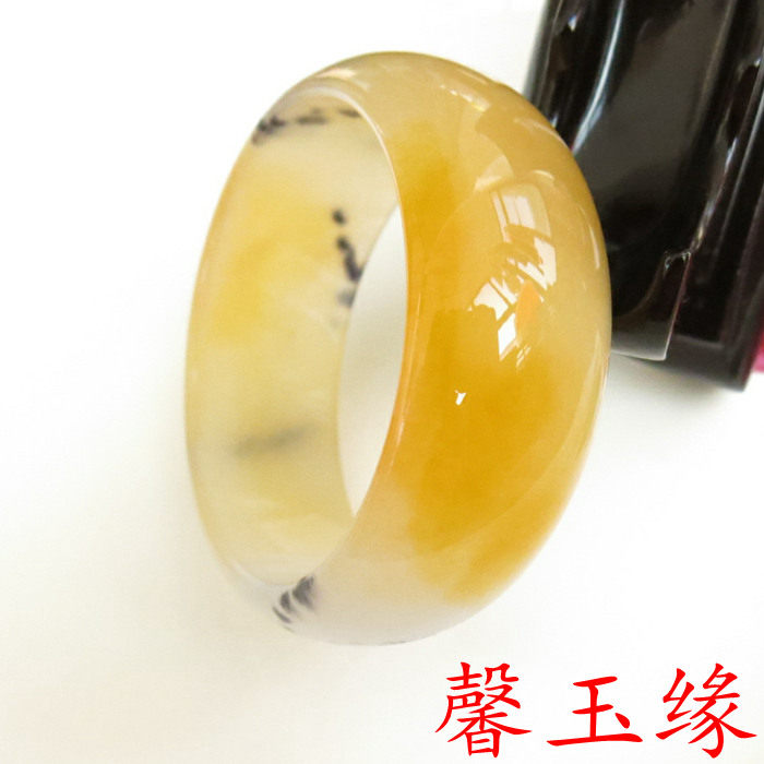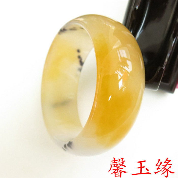 天然和田玉手镯 金丝玉戈壁玉冰种飘花手镯 女手镯加宽版