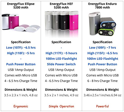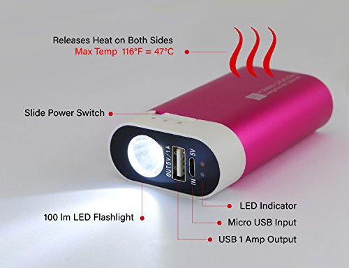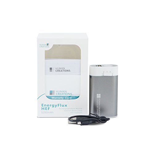 EnergyFlux HEF Electric Reuseable Hand Warmer 5200mAh / USB Portable Charger Power Bank Battery Pack with 100lm LED Flashlight