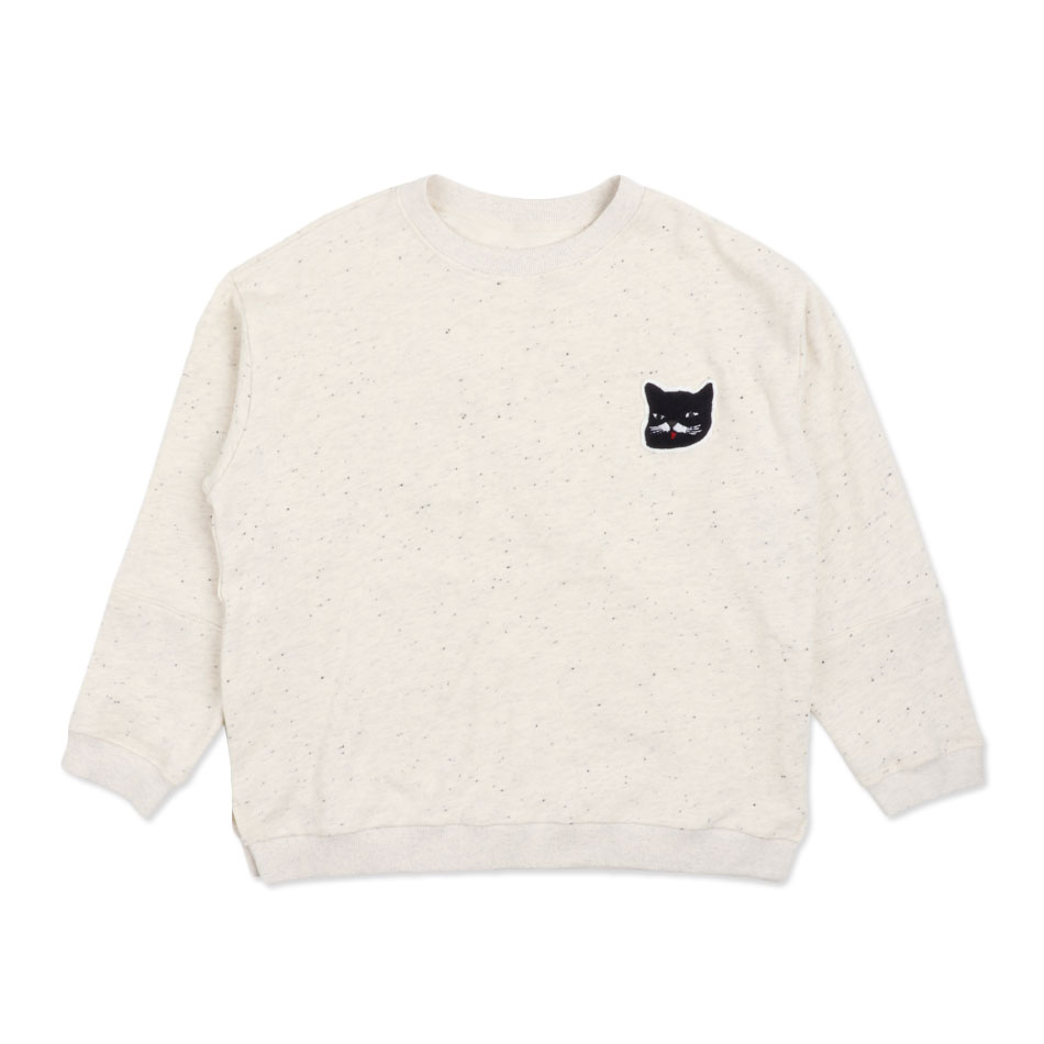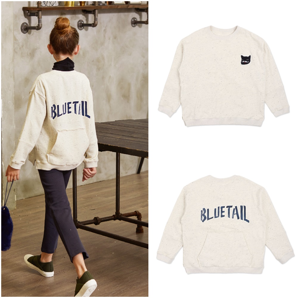 앞판에 고양이 와펜을 포인트로 여아만의 캐릭터를 제안하였고 마치 다른 티셔츠의 앞판을 잘라 리폼한듯이