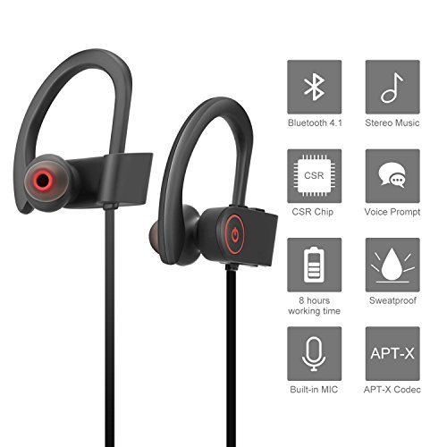 LetMet V4.1 Bluetooth Headphones Wireless - Sport Earphones - HD Stereo - Sweatproof Earbuds With Mic - Noise Cancelling Headsets For Running Workout and Gym
