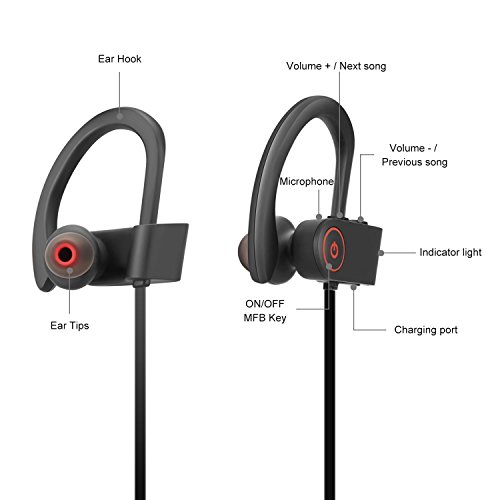 ★★★COMFORTABLE AND SECURE FIT WITH IPX-4 WATERPROOF RATING - flexible ear hooks with gel flex silicone earbuds to ensure your headphones stay comfortably firm in place to guarantee fatigue free ears and tangle free comfort.