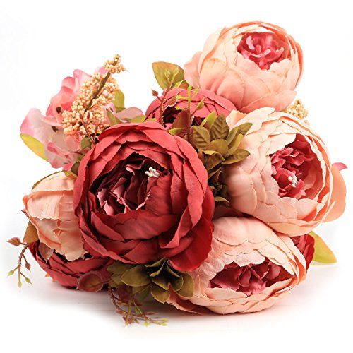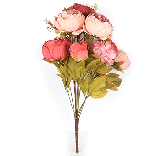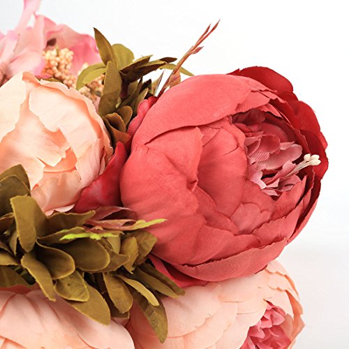 uxcell Artificial Flowers,Artificial Peony Silk Flowers Bouquet Home Wedding Decoration Red