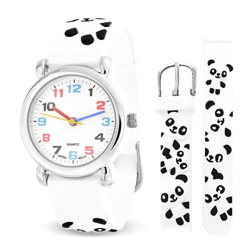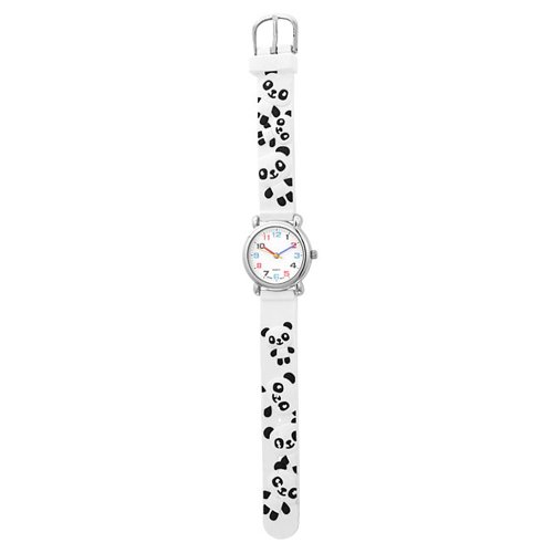 Bling Jewelry White Black Panda Cub Animal Kids Watch Stainless Steel Back
