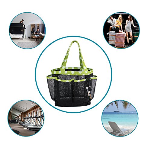 Portable Mesh Shower Caddy with 7 Storage Compartments & Key Hook, Quick Dry Hanging Toiletry and Bath Organizer, Perfect for Dorm, Camping ,Gym, Yoga,Camp & Travel, Green