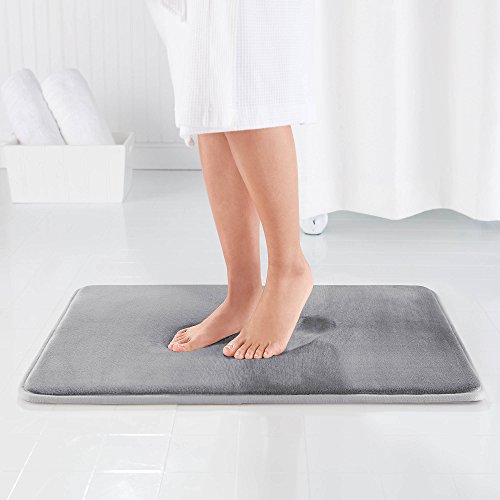 Genteele Memory Foam Bath Mat Non Slip Absorbent AND BEST Super Cozy Velvet Bathroom Rug Carpet (Gray, 17" X 24")