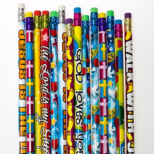 Studio : Rhode Island Novelty Publisher : Rhode Island Novelty Product Description Religious Party Favors For All Of Your Guests. Surprise your fellow church attendees with the Religious Pencil Assortment. Religious stationery is perfect for home, school, and office use. Give these pencils to members of your church family for a daily reminder of the importance of faith in their life! 100 religious inspired pencils per box. Pencils are approximately 7 1/2 long. Pencils are assorted designs and colors. Stock up on all of the religious favors, toys, and gifts you need to make your vacation bible school, Christian concert, or youth group night one to remember! Pack of 100. Pencils are approximately 7 1/2 ″ long. Pencils are assorted designs and colors. 0