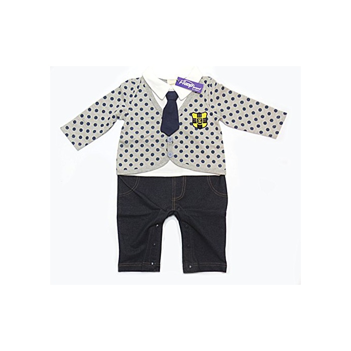 I-loop (i-loop) 베이비복 슈트풍 롬퍼스(rompers) 커버 올 신생아 긴 소매 춘추착 아동복 나비넥타이 키즈 포멀남아용 출산 축하 사진 촬영 ( 도트 grave 레더