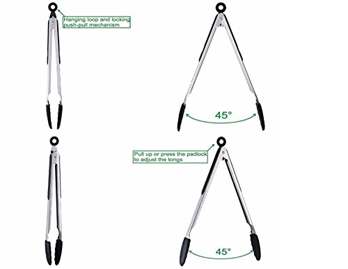 Lewuru (3) Pack Stainless Steel Cooking Tongs by Heat and Cold Resistant for Barbecue, Salad, Grilling, Frying, all your cooking needs