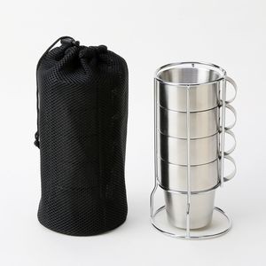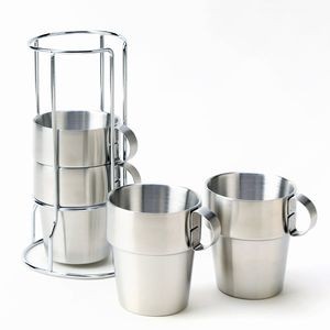 [UpAStorm]重ねて収納できる専用スタンドが付いたステンレスダブルウォールマグカップ4個セット