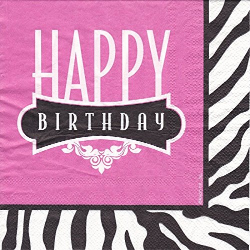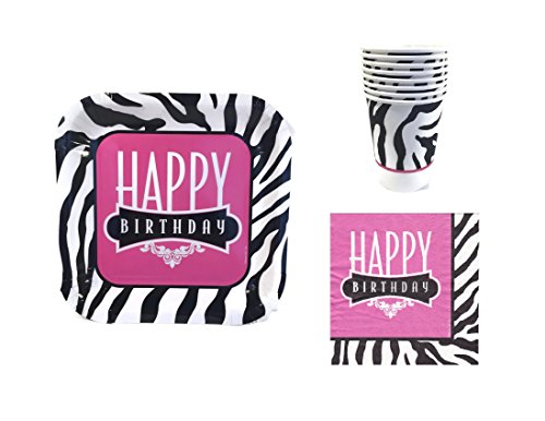 -. Title : Happy Birthday Pink and Zebra P.R.Int Party Supplies Pack for 8: Plates, Napkins and Cups