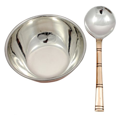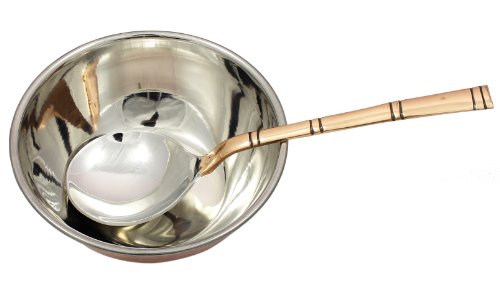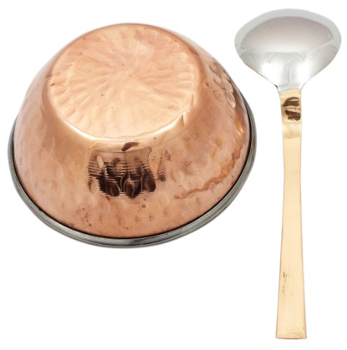 13.5 ounce, Copper Round Serving Bowl and Spoon Set for Salad, Pasta, Vegetables, Popcorn and Soup, Brown