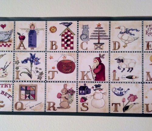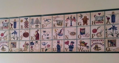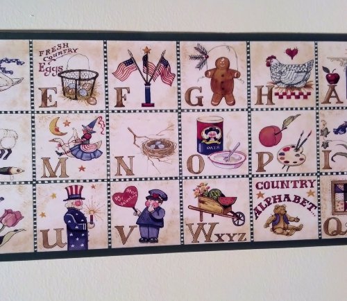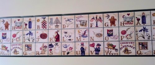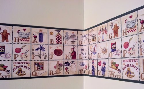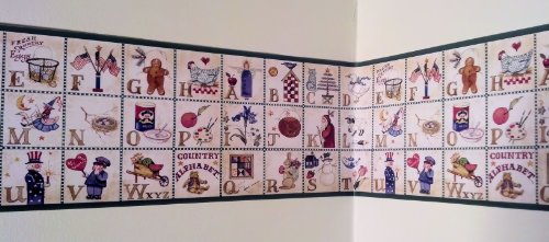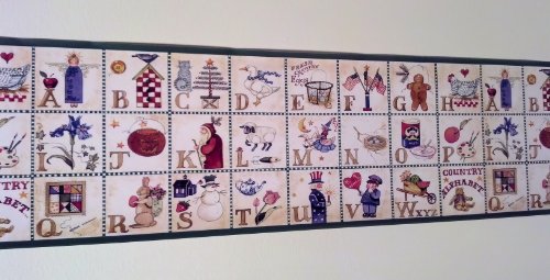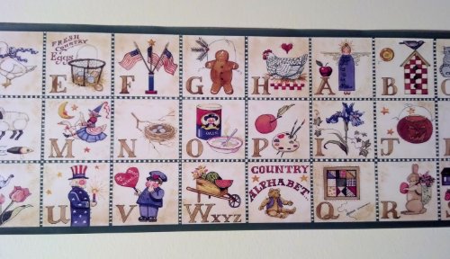 -. Title : Rosedale ALB3874 Alphabet Country Wallpaper Border, Green Edge