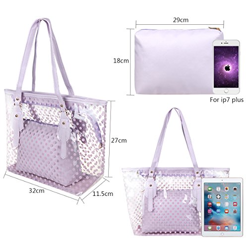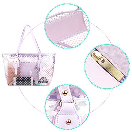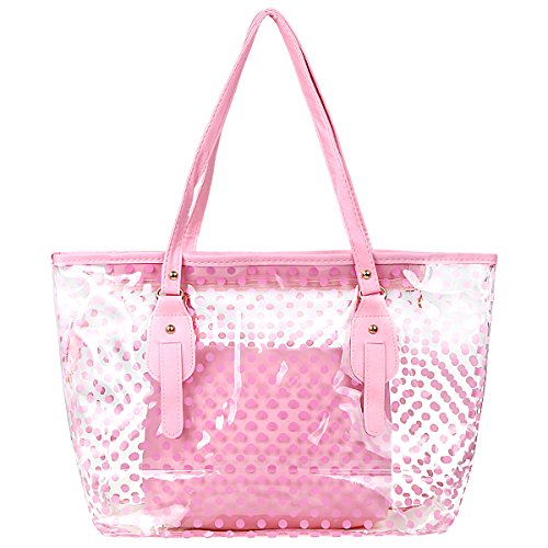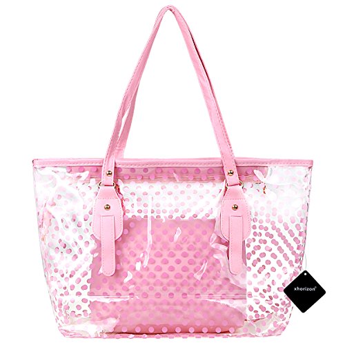 xhorizon FL1 Polka Dot Waterproof Transparent PVC Zipper Beach Handbag Carrier Tote Shoulder Bag