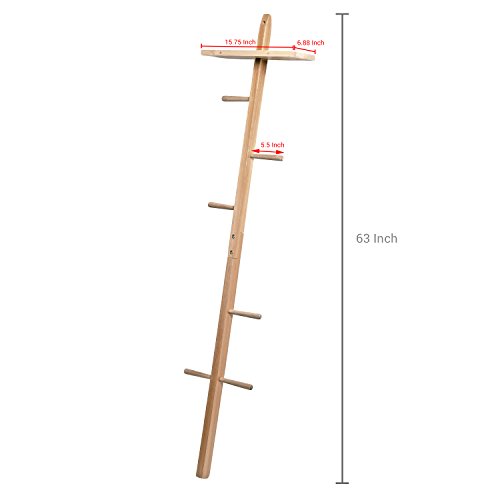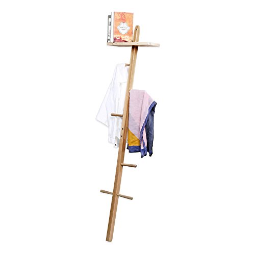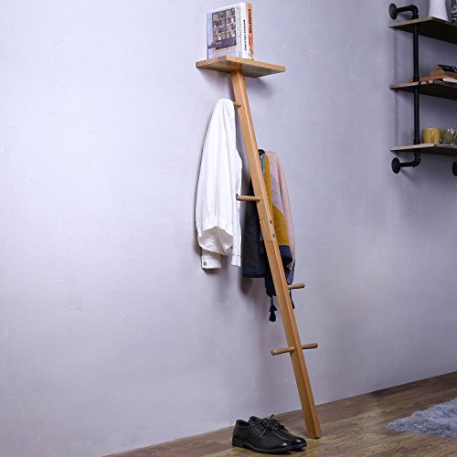 MyGift Wooden Wall Leaning Garment Tree with Storage Shelf