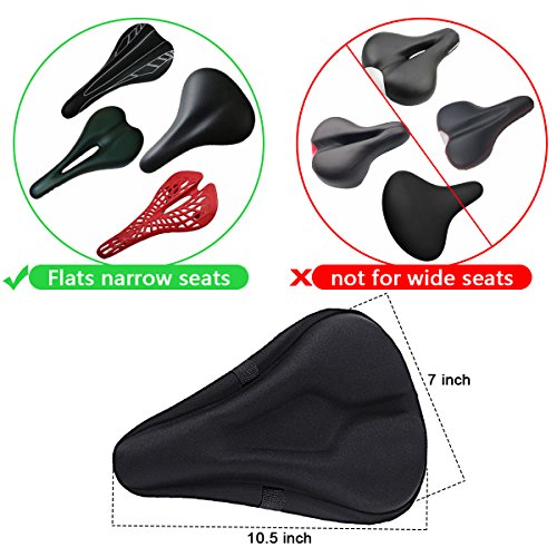 Please confirm the size could fit your bike seat before ordering.It fits NARROW bike seat, spins class and indoor cycling