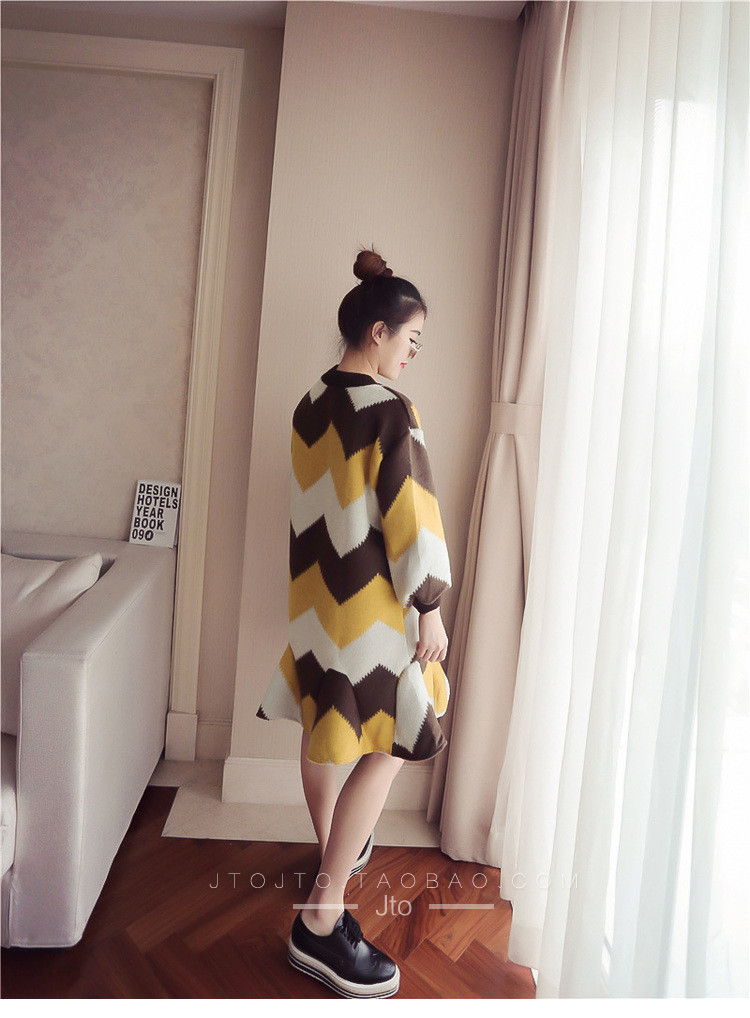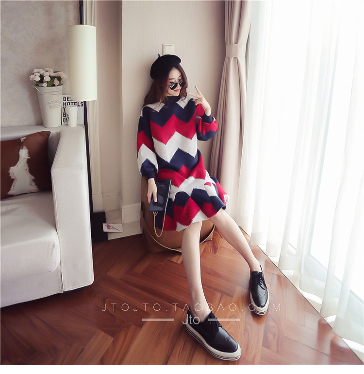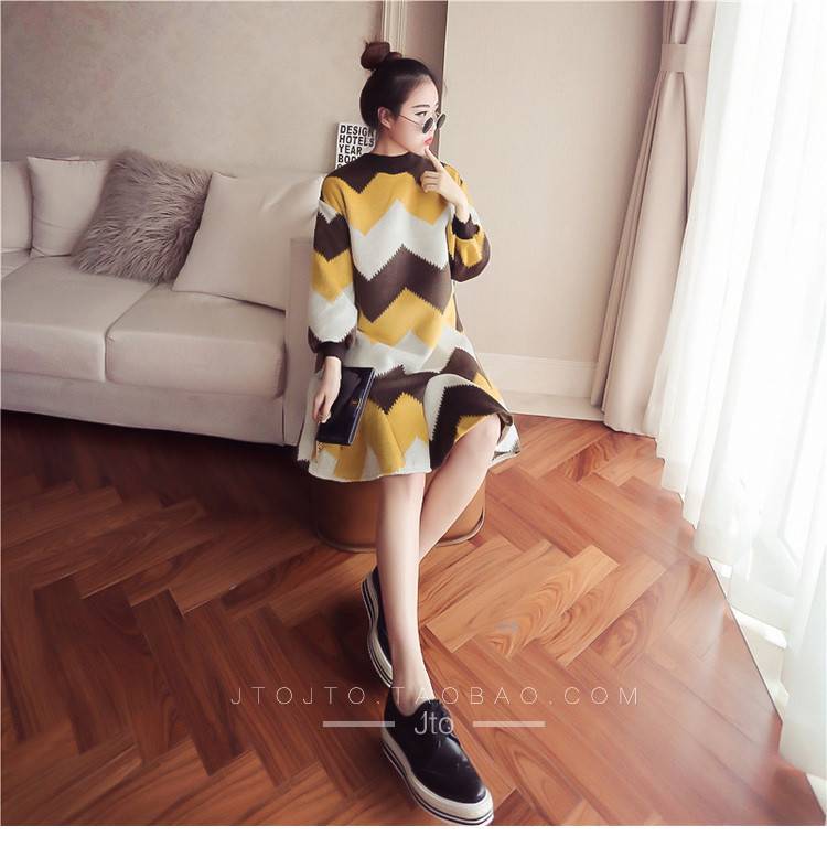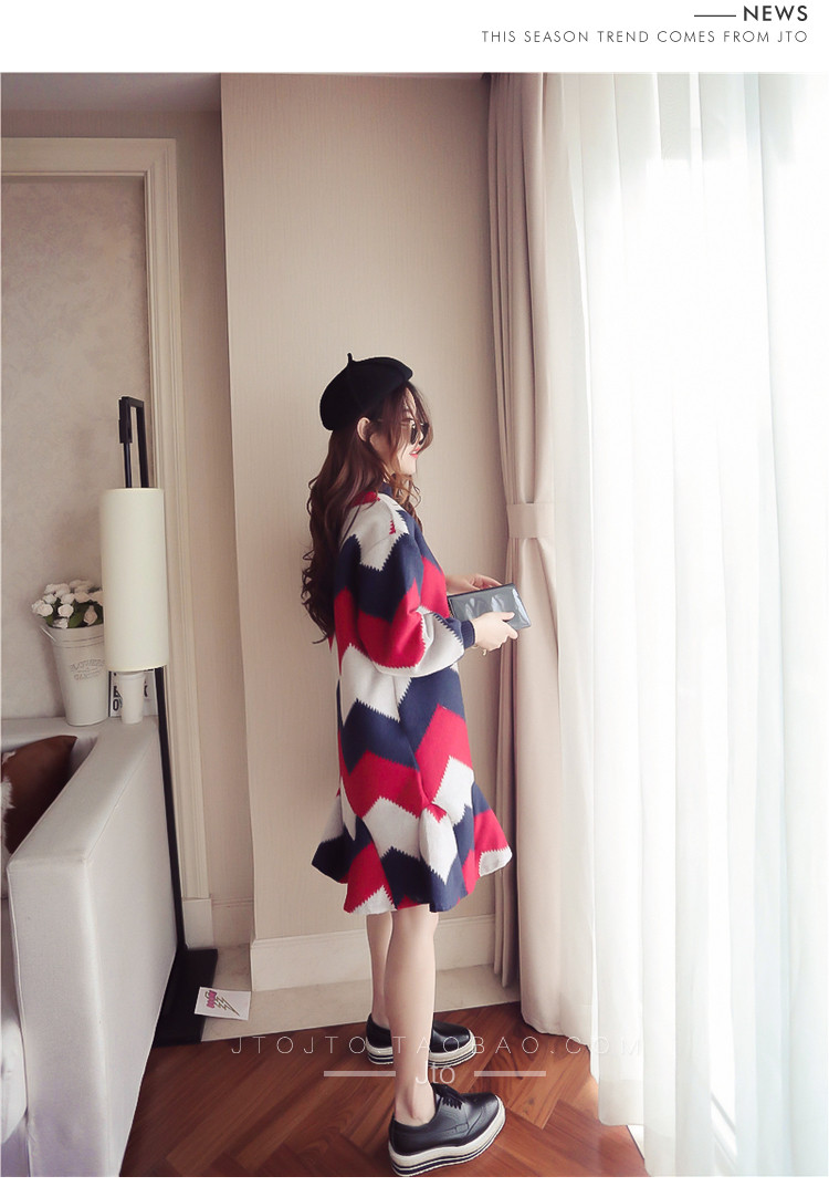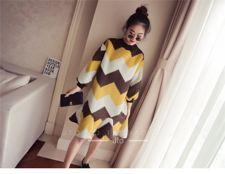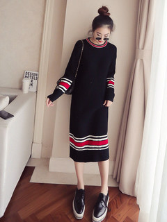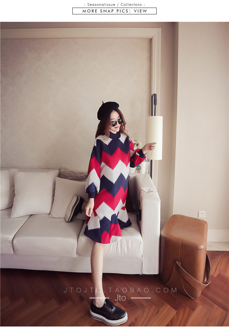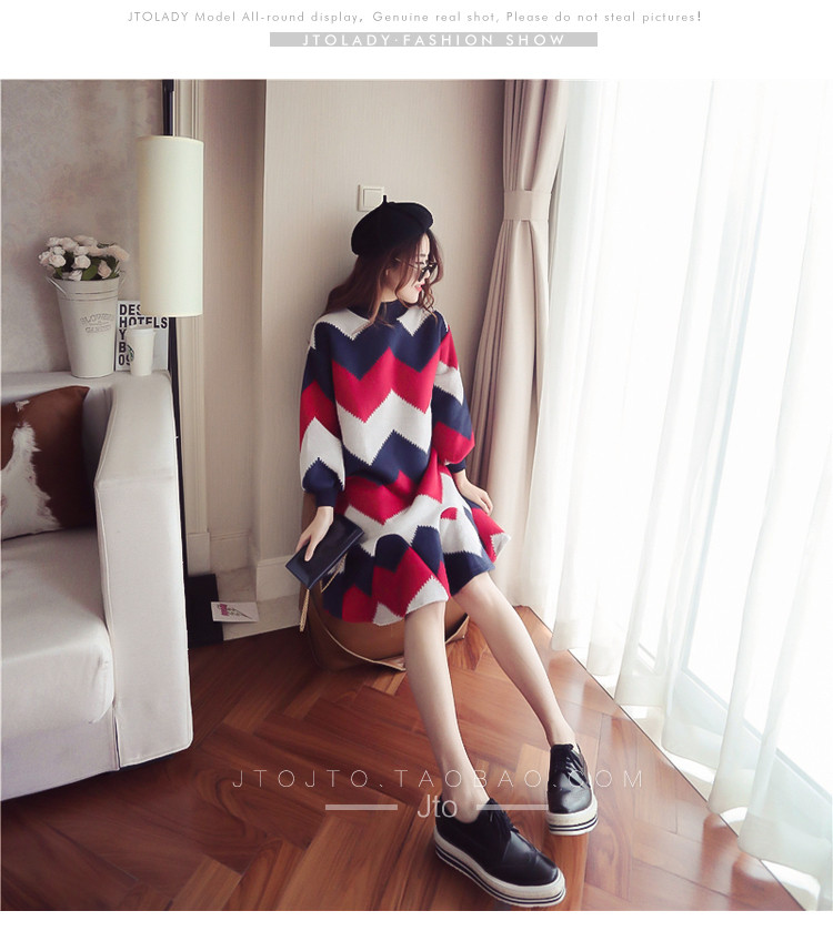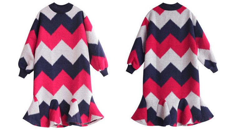 | Name. | 品名 - | 条纹A字毛呢连衣裙女秋冬新款宽松灯笼袖荷叶边套头鱼尾裙潮V273 |