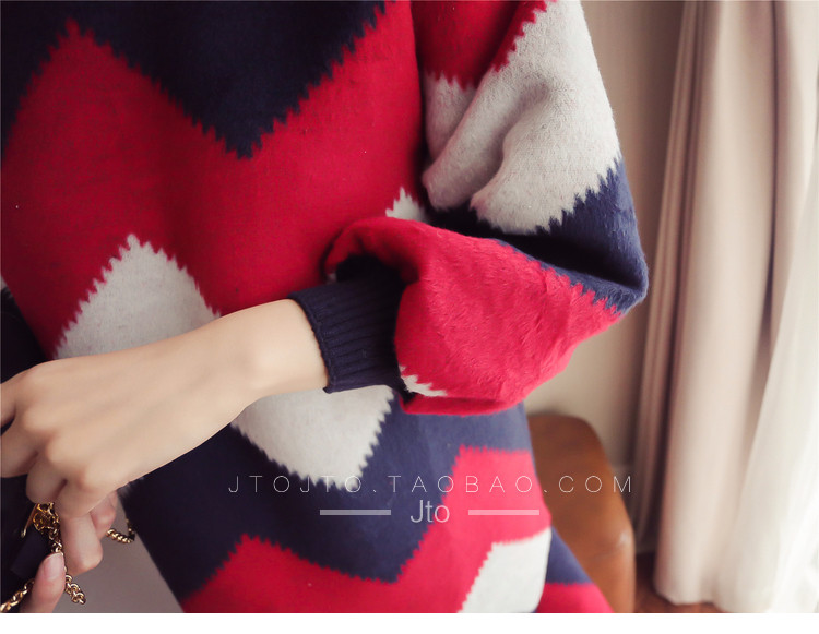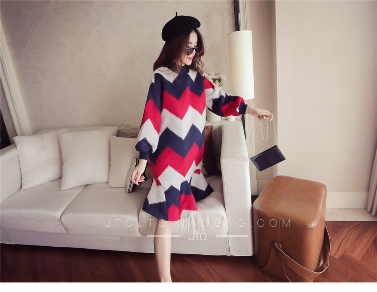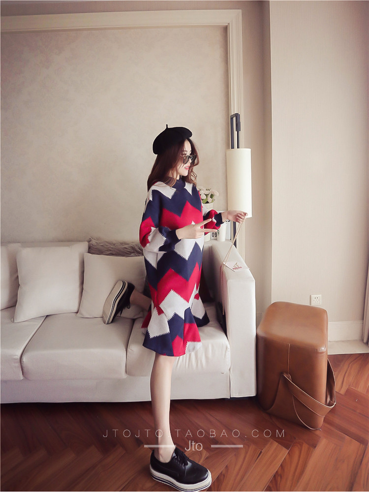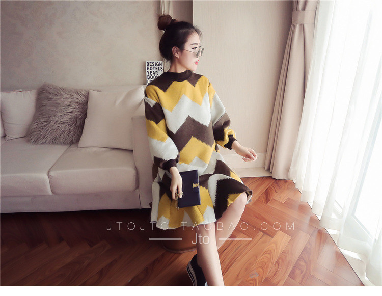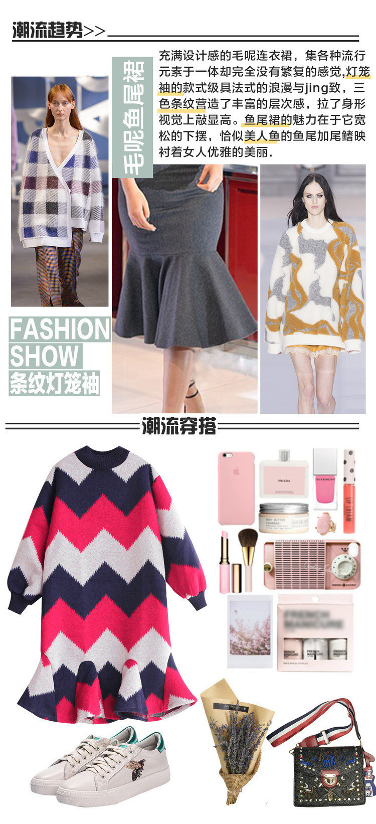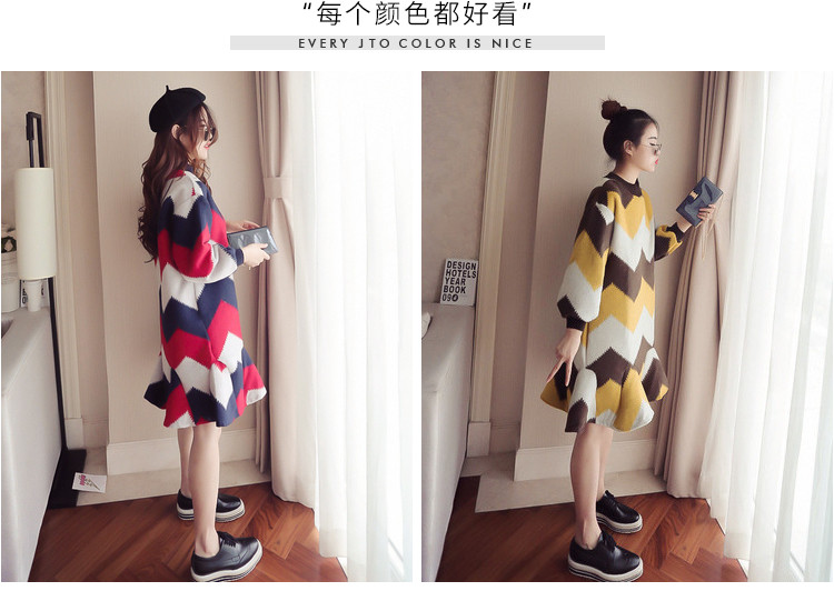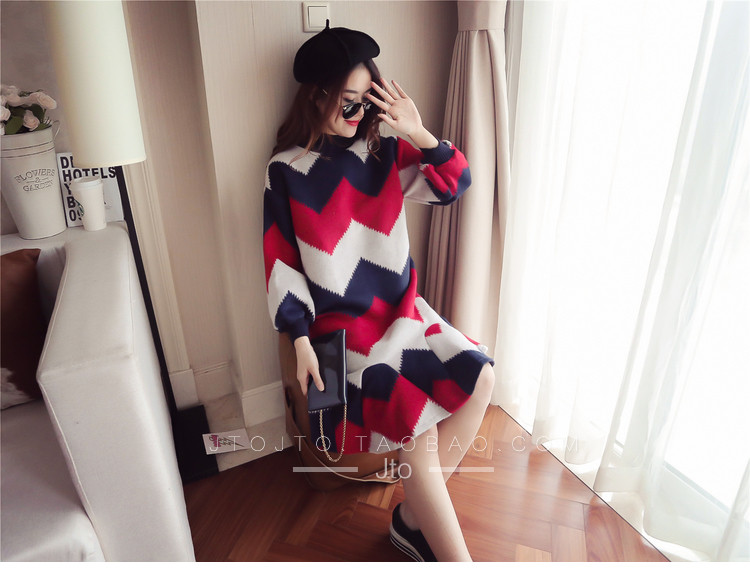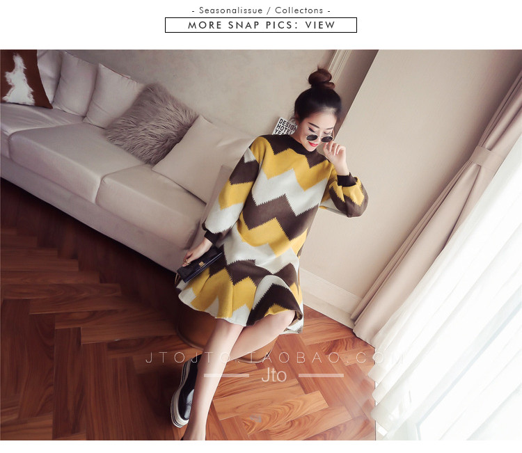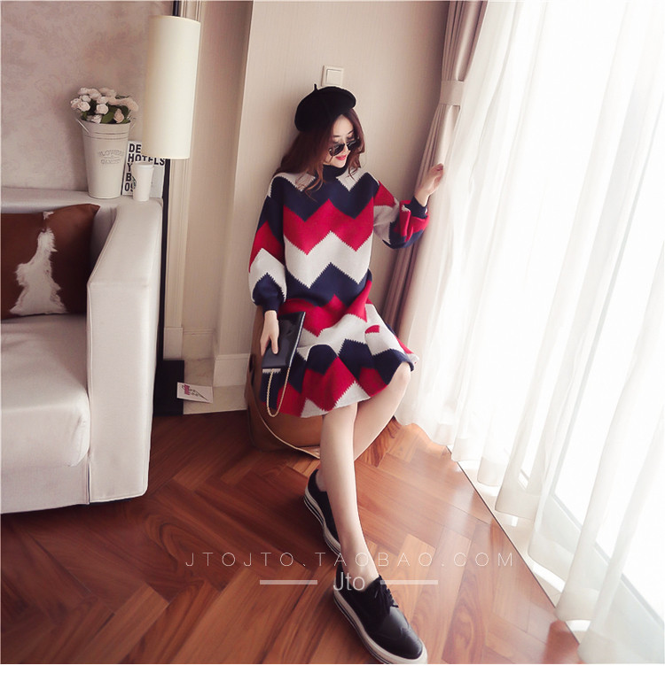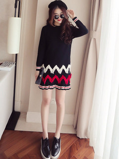 | Name. | 品名 - | 条纹A字毛呢连衣裙女秋冬新款宽松灯笼袖荷叶边套头鱼尾裙潮V273 |
