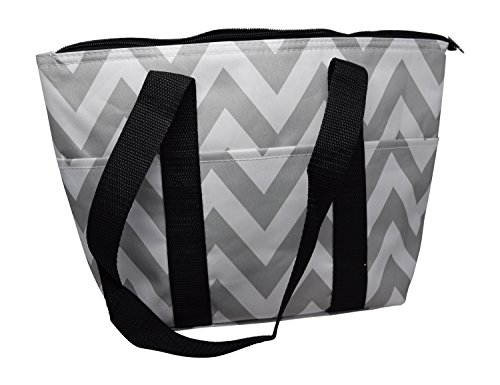 Large Reusable Zippered Top Insulated Lunch Bag (Grey Chevron)