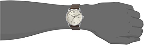 A sleek modern dial and a classic leather strap add minimalist style to this Commuter watch from Fossil.