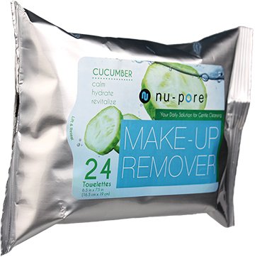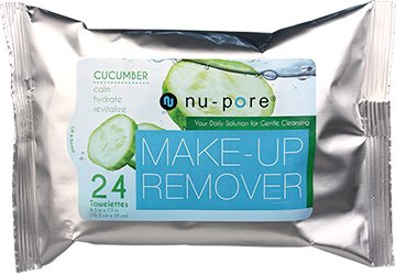 Nu-Pore Make-Up Remover With Cucumber Made with Cucumis Sativas (Cucumber) Fruit Extract. Soft, gentle, but sturdy towelettes that wipe away dirt and make-up Benefits: Oil free and hypoallergenic Convenient and perfect companion anywhere No rinse require Contains 24 pre-moistened towelettes in a pouch. *Product packaging may vary from image shownFeature