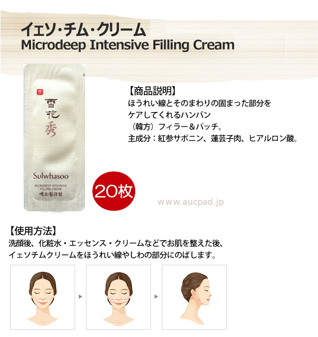 雪花秀 イェソ·チム·クリームは、ほうれい線を囲む硬くなったお肌をケアするイェソチムクリームが口元のお肌にハリを与えてくれます。お顔全体が崩れながら次第に硬くなってくるほうれい線部位、硬くなった部位をほぐしてハリのあるお肌へとケアします。ほうれい線部位の長さと深さに従って変化する肌年齢、硬くなったほうれい線をケアしてくれる イェソチムクリームが笑みのこぼれるお肌へとケアします。