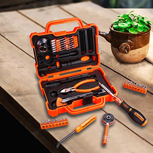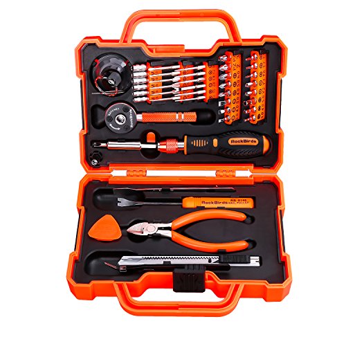 RockBirds Household Hand Tool Kit with Plastic Tool box, Orange, 47-Piece