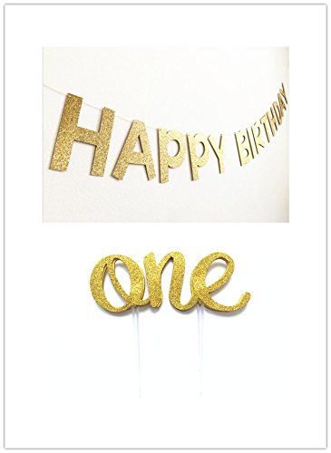 Originals Group First Birthday Cake Topper "One" Decoration AND "Happy Birthfday" Banner for Birthday Party Decor
