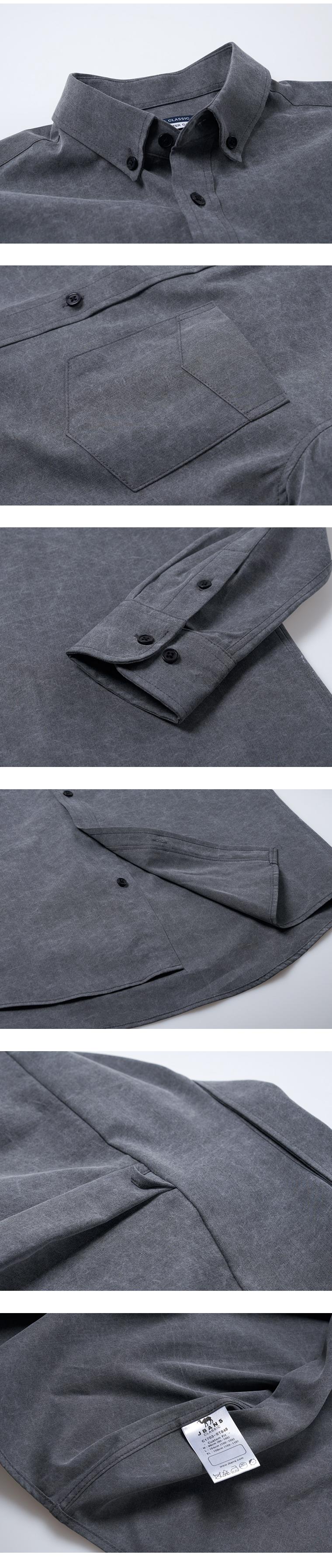 상품 정보 소재(%) - 면70%,나일론30% 색상 - 그레이 치수 - M / L / XL 제조사 - ㈜제이반스 제조국 - 대한민국 제조년월 - 2017.10 이후 바이오워싱 CN코튼 포켓남방 바이오가공을 거친 CN원단으로 제작된 셔츠입니다. 내추럴한 느낌이 잘 살아있는 원단이 매력적으로 자연스러운 컬러감과 실루엣이 잘 살아나는 셔츠입니다. 편안한 핏감과 부드러운 터치감으로 캐주얼하게 치노팬츠 등과 매치하면 잘 어울리며, 슬랙스와 코디해도 세련된 코디를 연출할 수 있습니다. 권장세탁방법 제옷을 오래 입고 변형을 막기 위해 드라이크리닝을 권장합니다. 데님이나 짙은 색상의 옷은 물빠짐이 있을 수 있으니 반드시 단독세탁 해주세요. 잘못된 세탁으로 인해 손상된 옷은 교환/환불이 어려운점을 미리 알려드립니다. | |||||||||||||||||||||||||||||||||||||