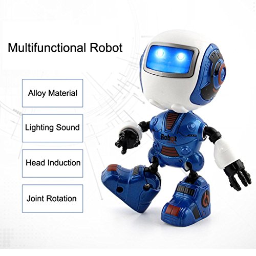 -. Feature : new type of induction, touch, multi function, light music, intelligent Mini alloy robot / Product Name: intelligent induction robot,Battery : 3 * button battery (Included) / Perfect for over 3 years olds Kids / Function: alloy material, lighting, sound effect, head induction, joint rotation / Package Included: 1x Robot(Battery Include)