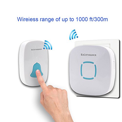 -. Title : Binwo Wireless Doorbell Ring, Smart-home Wall Plug-in Cordless Door Chime Operating at 1000 feet/300m, LED Flash, 1 Push Buttons & 1 Plug-in Receiver and 4-level Volume