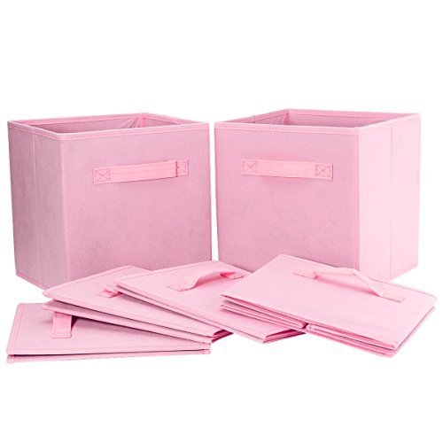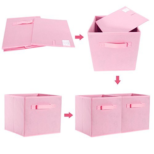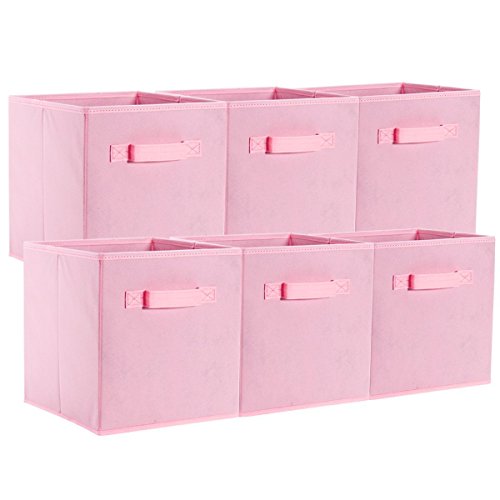 Foldable Cloth Storage Cube On'h Fabric Drawer Storage Baskets and Bins for Home Kitchen Bedroom Office Pack of 6, Pink