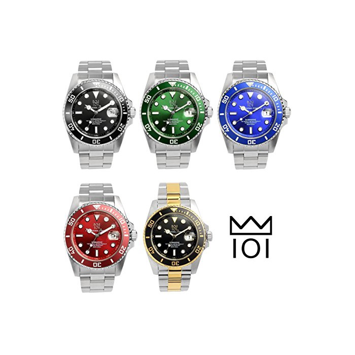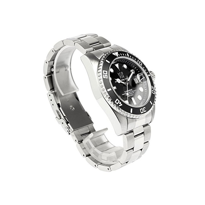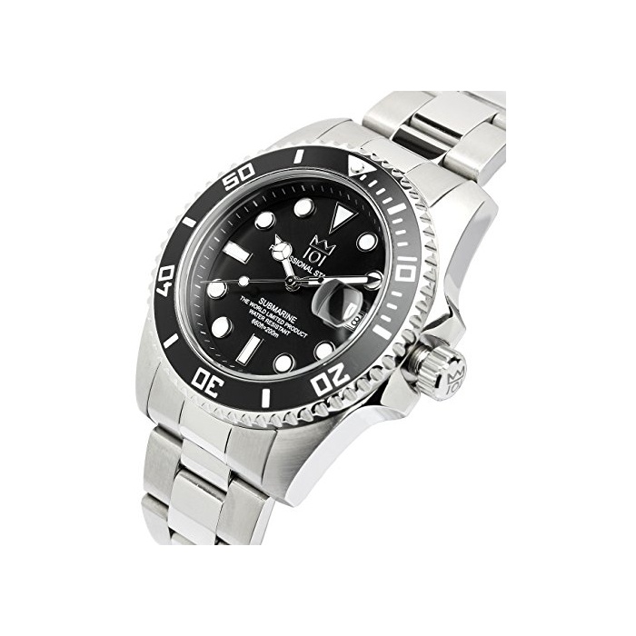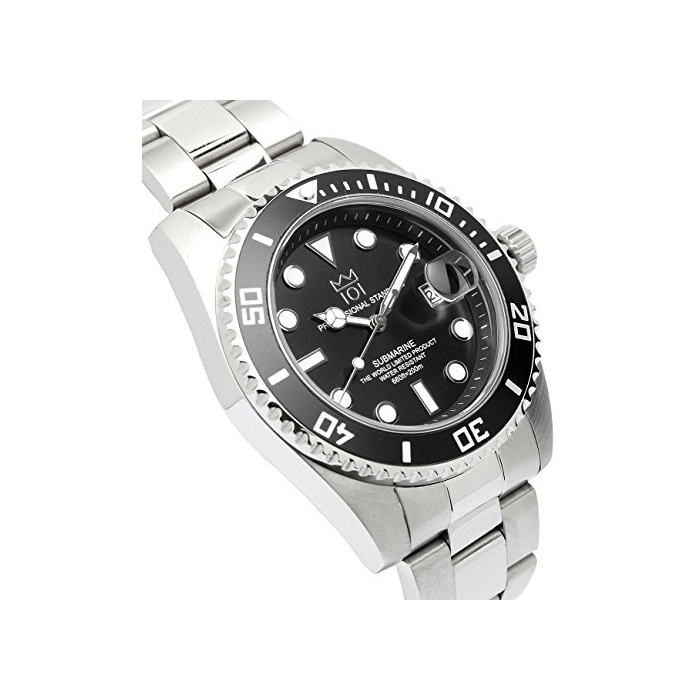 원본상품명: [HYAKUICHI 101] ダイバズウォッチ 日付表示 200m防水 逆回防止ベゼル 腕時計 メタルバンド ブラック メンズ
