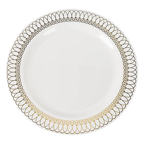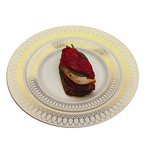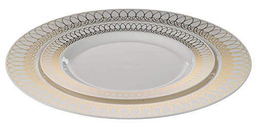 Exquisite 40-Pack Gold Ovals Design Plastic Plates (20-dinner 20-dessert) Set Premium Heavyweight Plastic Wedding Plates "Looks Like China"